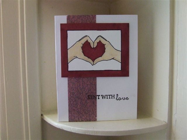 This is the valentines card I sent to my in laws. It's coloured with copics (the only colours I own). The strip on the left is using the glitter ribbon technique and since it is completely glitter is very sparkly but doesn't show up on camera at all!!!
